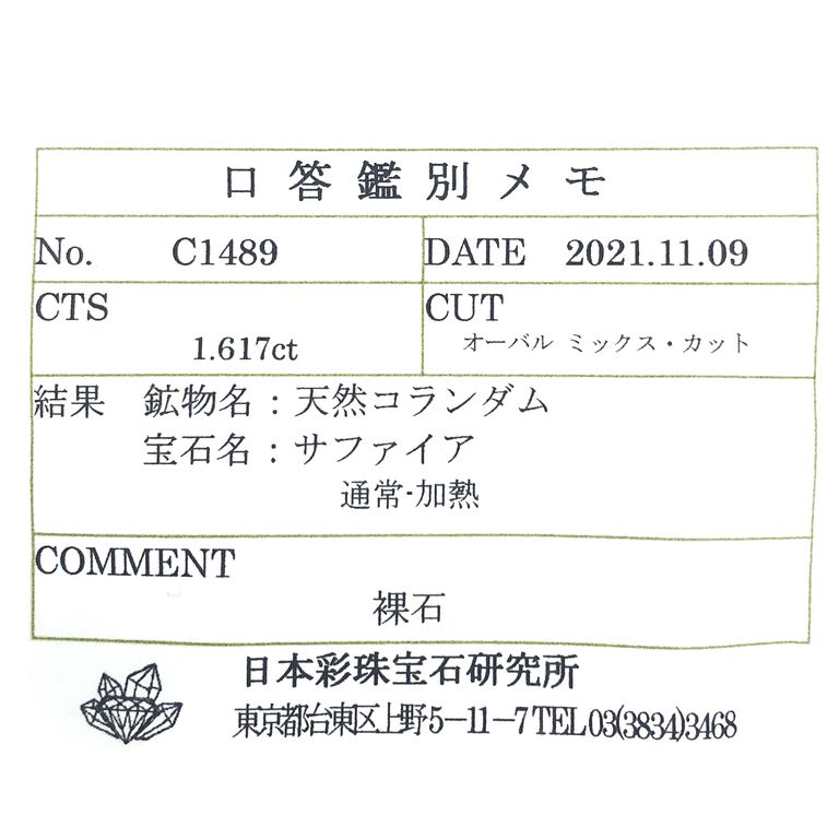 ※サファイアは鑑別上「通常-加熱」と記載される宝石です。