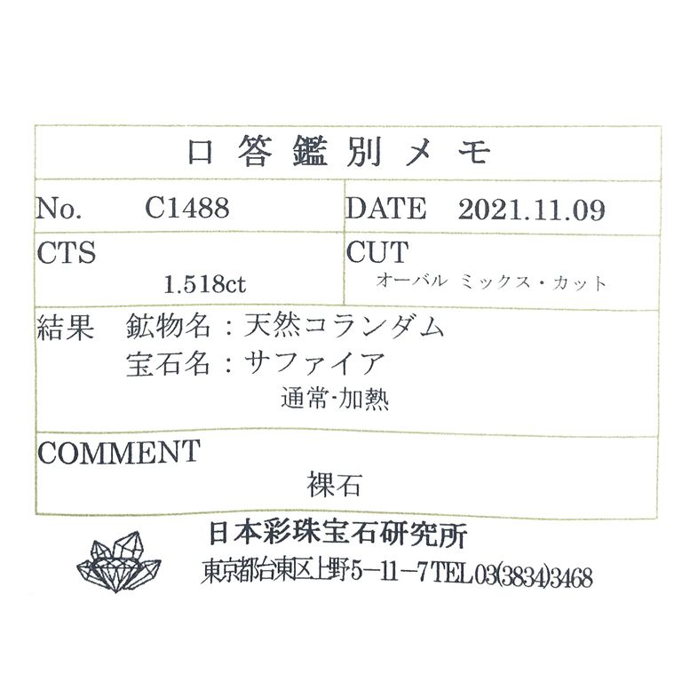 ※サファイアは鑑別上「通常-加熱」と記載される宝石です。