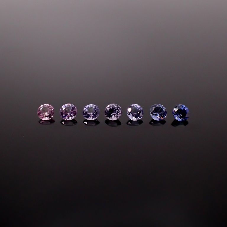 サファイア カラーグラデーション7個セット タンザニア産 0.51ct(7pcs合計) / 2.4-2.5x2.4-2.5mm前後 [260131629]