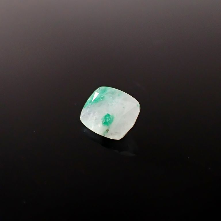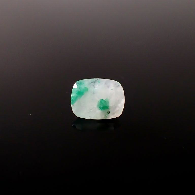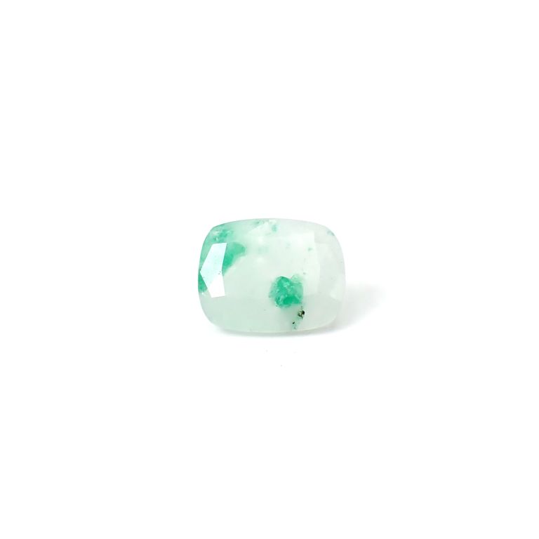 ミルキーホワイトな母岩の中にエメラルドのグリーンカラーが取り込まれた、ナチュラルな風合いが人気のルース。ふわりと溶け込んだように見えるものから、エメラルドの結晶形がくっきり見えるものまで様々です。