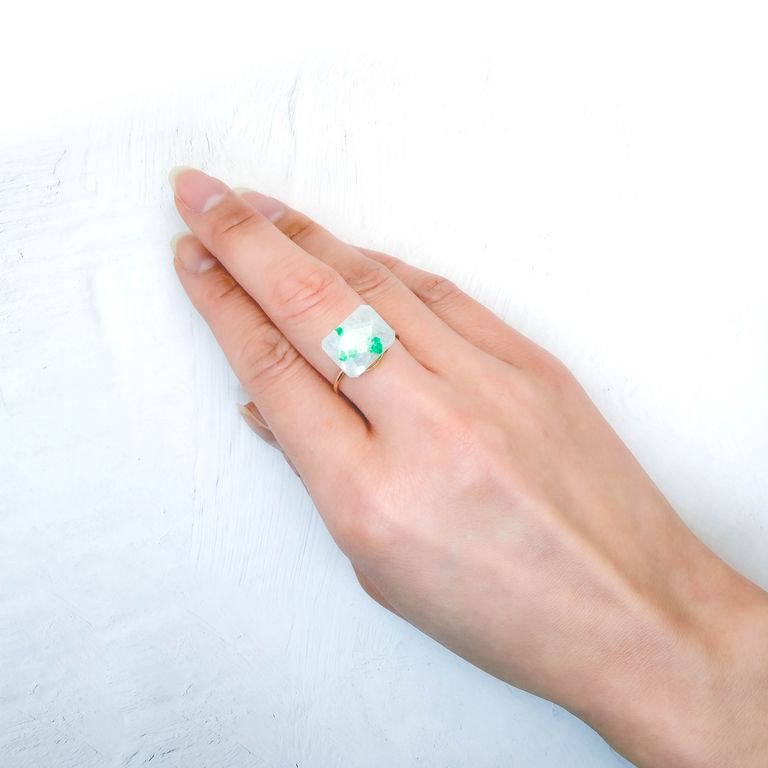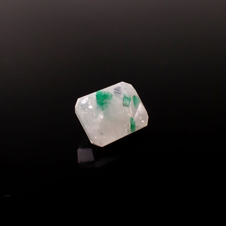 ミルキーホワイトな母岩の中にエメラルドのグリーンカラーが取り込まれた、ナチュラルな風合いが人気のルース。ふわりと溶け込んだように見えるものから、エメラルドの結晶形がくっきり見えるものまで様々です。
