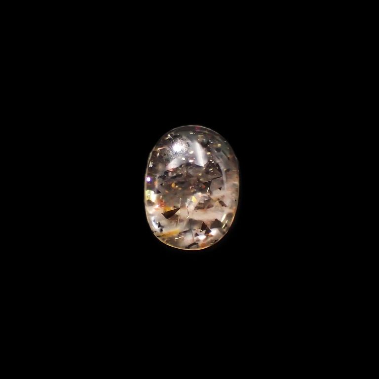 この希少な<ムーンストーン+アベンチュレッセンス>のベースに偶然が作りだした虹色の格子が重なるという掛け合わせは、これ以上ないほど奇跡的な存在。最も熱い”サンストーン"です。