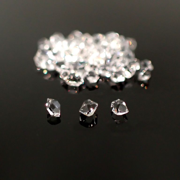 原石の両端がとがった形(ダブルターミネーテッド)が美しく、全く無加工(未研磨)の状態でも強い光沢を放ちます。その姿がまるでダイヤモンドの結晶のように見えることから、「ハーキマーダイヤモンド」と呼ばれるようになりました。