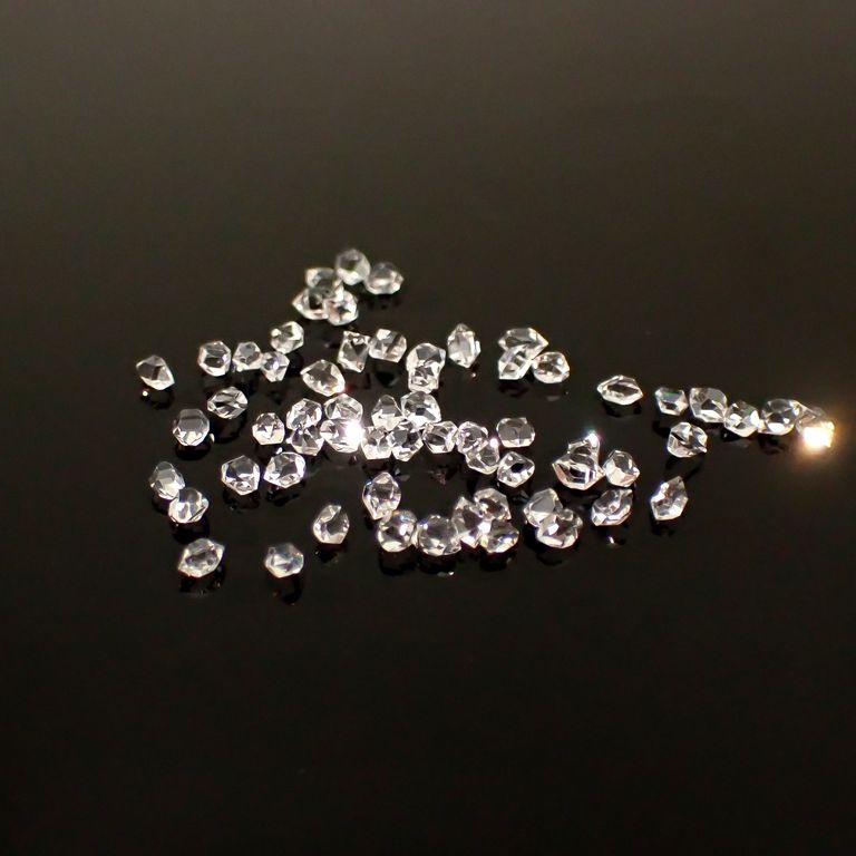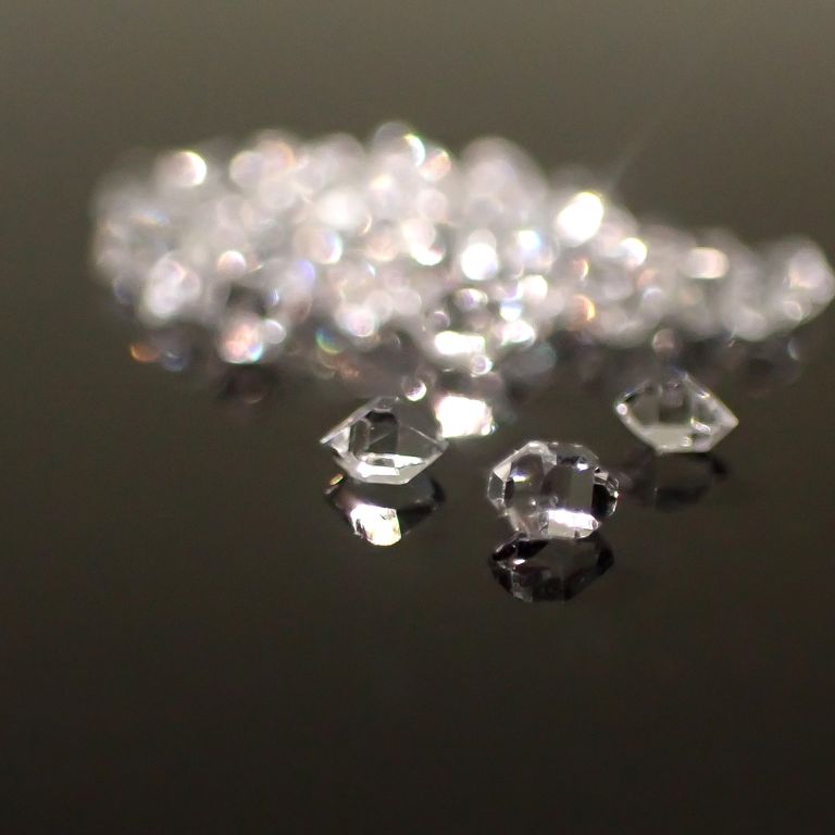 原石の両端がとがった形(ダブルターミネーテッド)が美しく、全く無加工(未研磨)の状態でも強い光沢を放ちます。その姿がまるでダイヤモンドの結晶のように見えることから、「ハーキマーダイヤモンド」と呼ばれるようになりました。