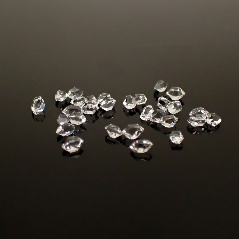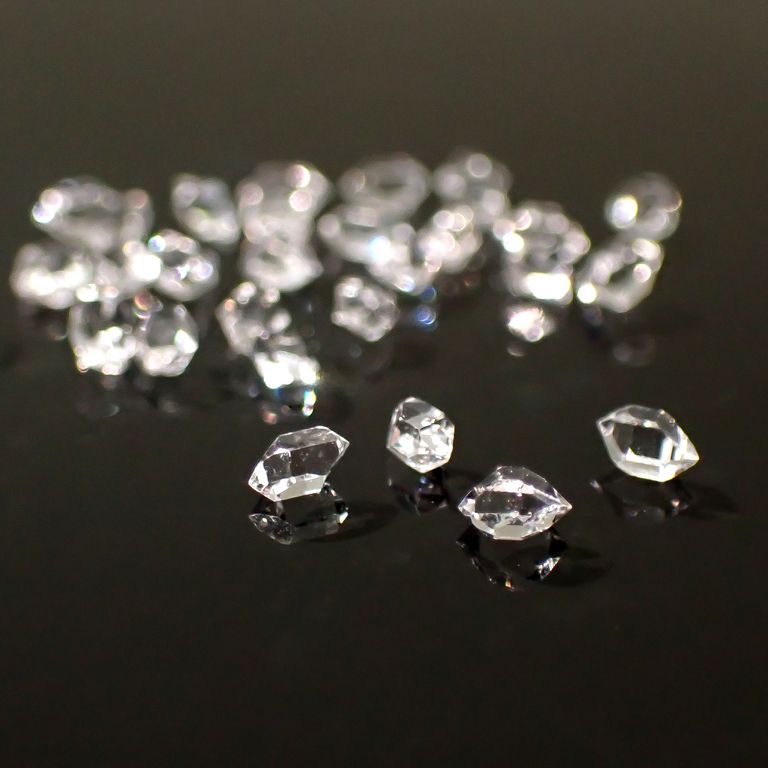 原石の両端がとがった形(ダブルターミネーテッド)が美しく、全く無加工(未研磨)の状態でも強い光沢を放ちます。その姿がまるでダイヤモンドの結晶のように見えることから、「ハーキマーダイヤモンド」と呼ばれるようになりました。