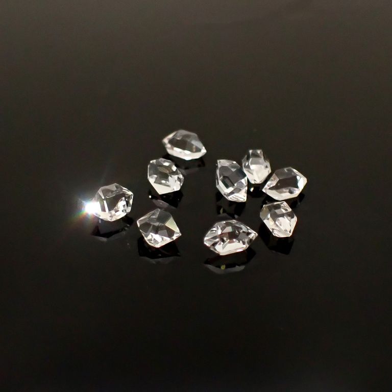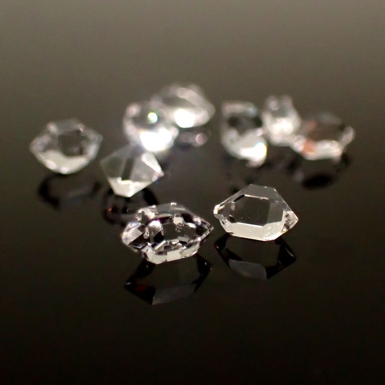 原石の両端がとがった形(ダブルターミネーテッド)が美しく、全く無加工(未研磨)の状態でも強い光沢を放ちます。その姿がまるでダイヤモンドの結晶のように見えることから、「ハーキマーダイヤモンド」と呼ばれるようになりました。