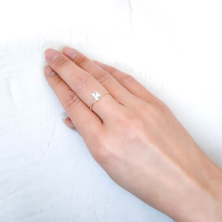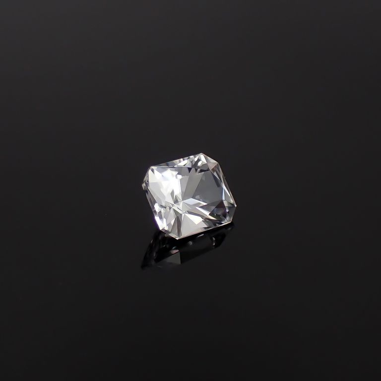 トパーズを超える高い屈折率を持ち、上質なファセットカットがほどこされたルースは、ダイヤモンドと間違われるほどの輝きを放ちます。