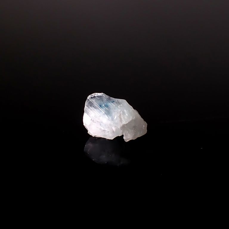 ほとんどの結晶が無色で、部分的にブルーやグリーンが出ているものがあり、特にこのブルーの色合いには高い評価が付けられます。ただし、このブルーの部分はユークレースの劈開面に沿って現れているため、非常に割れやすいのです。結晶の柱面にそって発色するような色の現れ方は、同じく強い劈開性を持つカイヤナイトでも見られます。