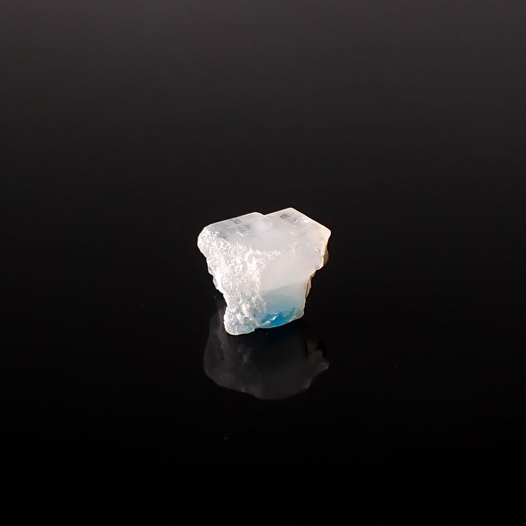 ほとんどの結晶が無色で、部分的にブルーやグリーンが出ているものがあり、特にこのブルーの色合いには高い評価が付けられます。ただし、このブルーの部分はユークレースの劈開面に沿って現れているため、非常に割れやすいのです。結晶の柱面にそって発色するような色の現れ方は、同じく強い劈開性を持つカイヤナイトでも見られます。