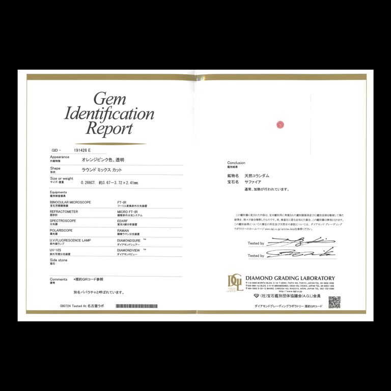 - DGL鑑別書付き