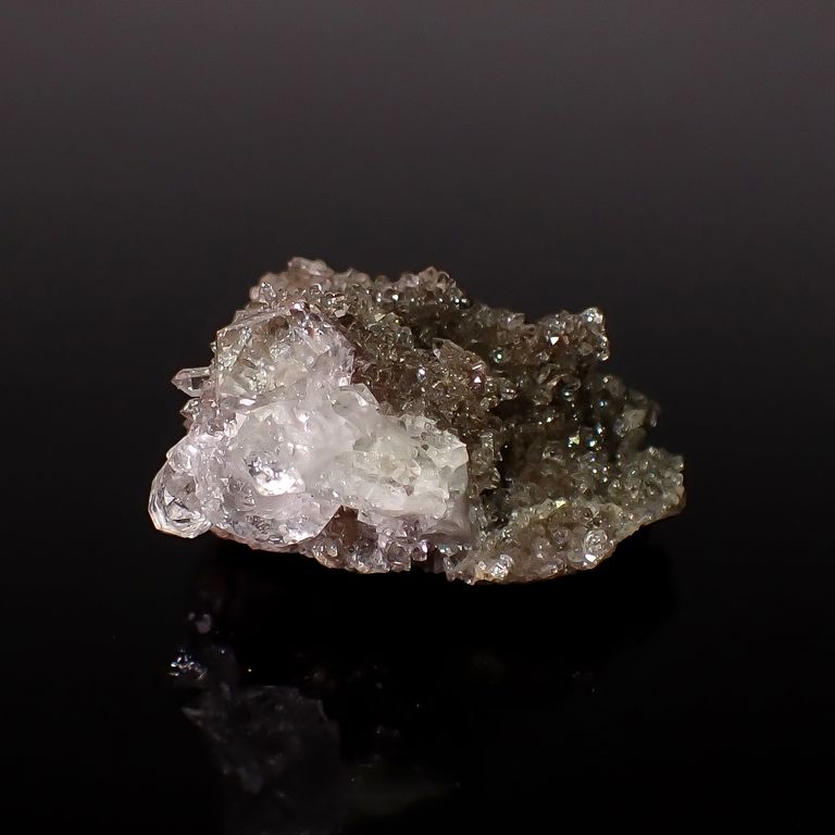 ハーキマーダイヤモンドは、ニューヨーク州がかつてまだ海の底だった頃、海底の堆積岩(ドロマイト)を母岩として形成されました。ドロマイトは低温域の岩石で、低温域(573℃以下)で時間をかけて形成される低温水晶は高温水晶と比べ非常に透明度が高く結晶します。