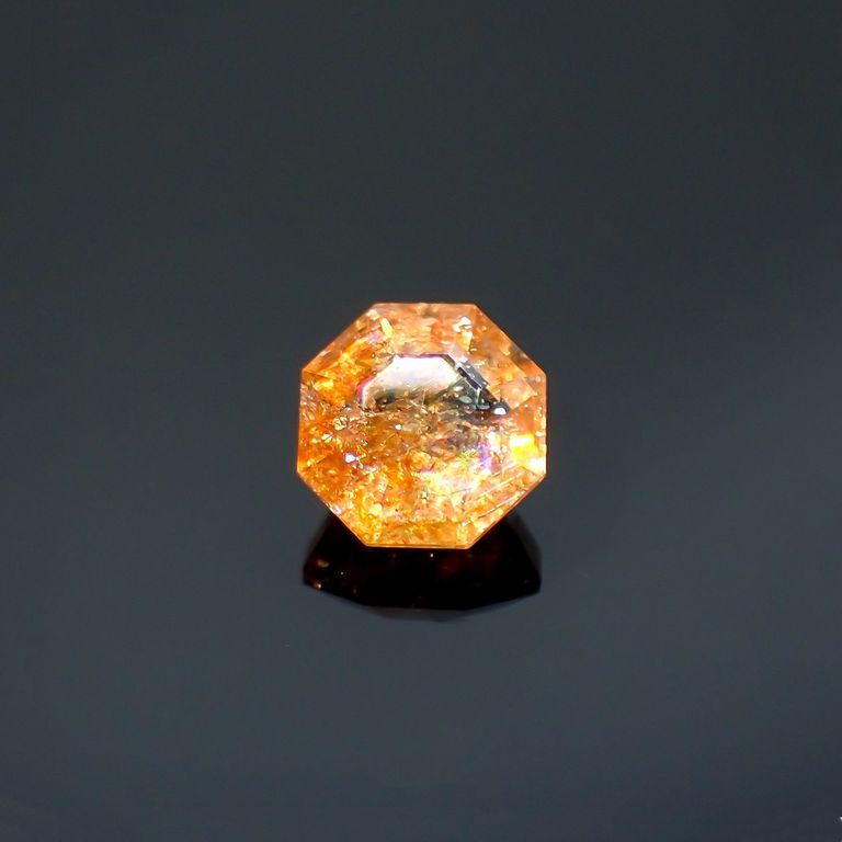 ◇オクタゴンカット◇イリュージョンサンストーン インド産 0.61ct / 5.3x5.2mm前後 [260215486]