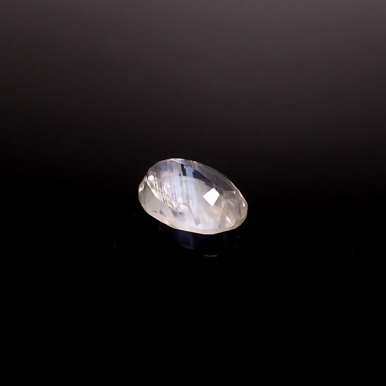 今回のマラウイムーンストーンは、まだ正確な成分の分析は途中ですが、現段階では斜長石のアルバイトを主とし、わずかにオーソクレースなどのアルカリ長石も含んだ固溶体の長石と考えられます。ただし、原石からカットした場所ごとによって、成分の割合は各々異なります。