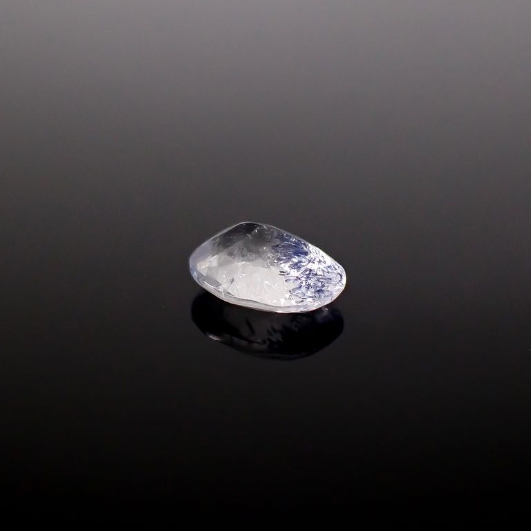 一般的にはブルーの色合いが多く、カボションのカーブやファセットカットのいくつもの面に微細な結晶が写り込み、万華鏡のように広がる世界はまるで雪の花が咲いたよう…!