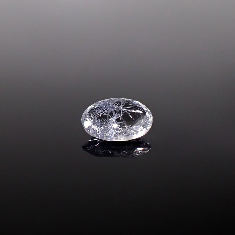 針状結晶で内包されると、まるで水晶の中にちいさな花が咲き乱れるような美しさに。針状結晶の先に光がともり、水滴がきらめくような幻想的な美しさを持つ内包物となります。