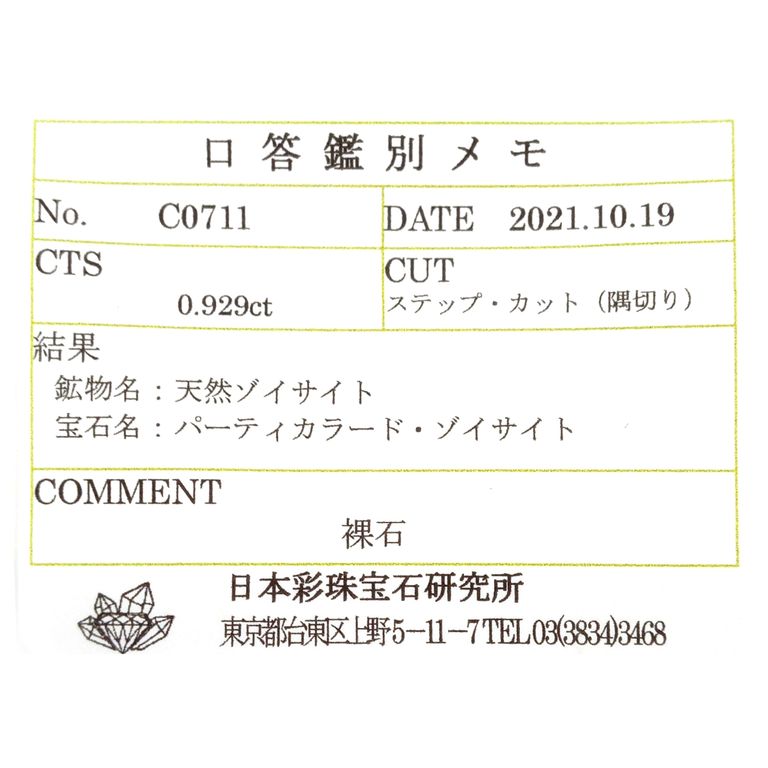 ゾイサイト(タンザナイト)は基本的に鑑別機関において加熱の過程を特定することが困難であり、非加熱検査ができない石種です。非加熱の文字を付けているものは、仕入れ元情報によるものです。