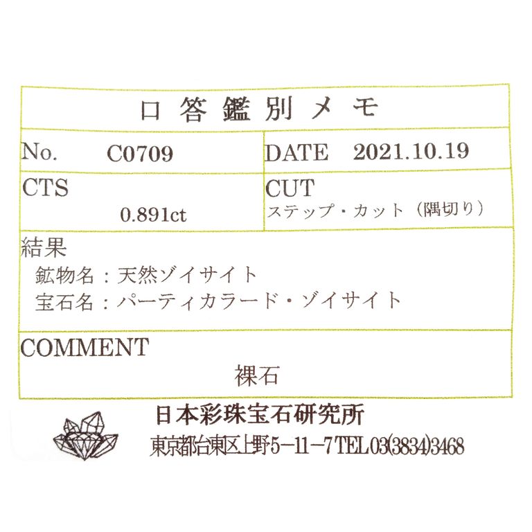ゾイサイト(タンザナイト)は基本的に鑑別機関において加熱の過程を特定することが困難であり、非加熱検査ができない石種です。非加熱の文字を付けているものは、仕入れ元情報によるものです。