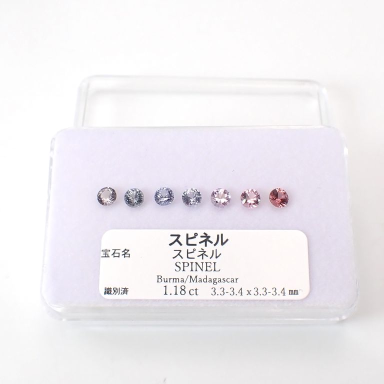 スピネル カラーグラデーション7個セット(宝石名スピネル)ビルマ/マダガスカル産 識別済 1.18ct(7pcs合計) / 3.3-3.4x3.3-3.4mm前後 [260331895]