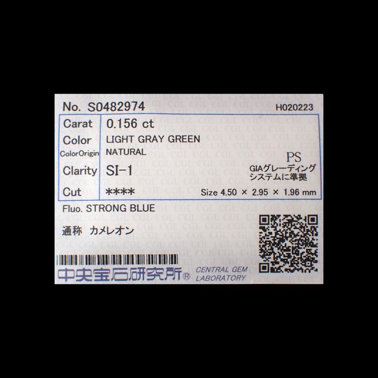 カメレオンダイヤモンド(グリーンダイヤモンド) SI-1 | LIGHT GRAY GREEN(宝石名ダイアモンド) ソ付(CGL) 0.156ct / 4.5x2.95mm前後 [260331942]