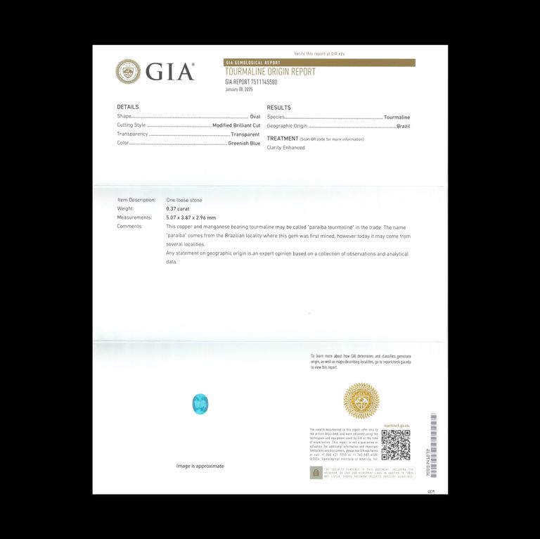 パライバトルマリン(宝石名宝石名トルマリン/別名パライバ・トルマリン)ブラジル・キントス鉱山産 GIA鑑付 0.37ct / 5.07x3.87mm前後 [260331939]
