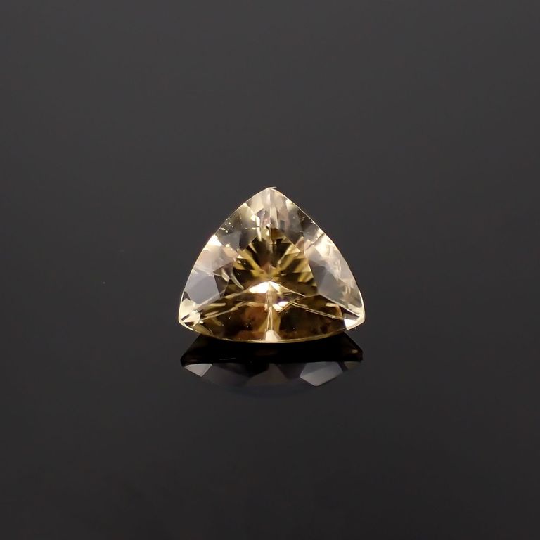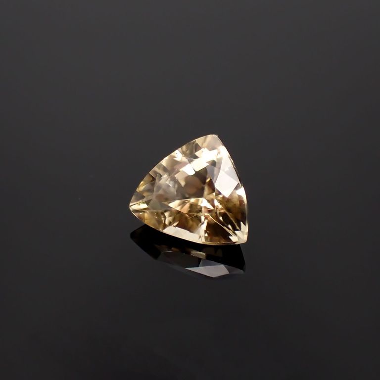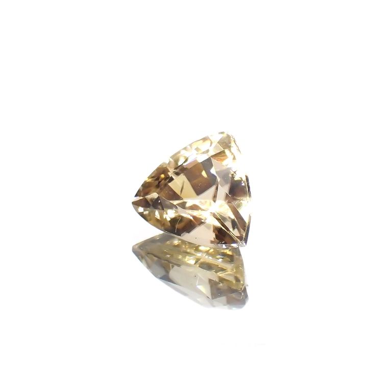 シャンパンイエローからイエローブラウン系の色合いを持つ宝石で、複屈折性による多色性を持ちます。シンハライトの多色性は三色。淡褐色・緑がかった褐色・暗褐色を見ることができます。