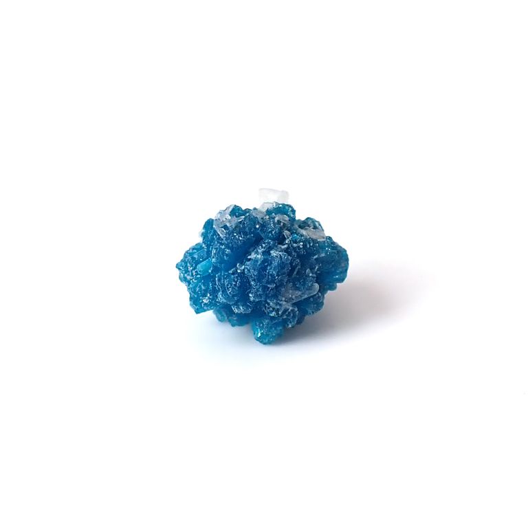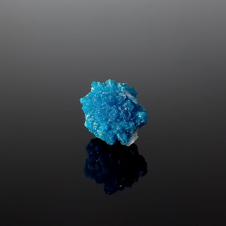 濃厚なエレクトリックブルー~ブルーグリーンの色を持ち、冗談かなと思うほどに美しい結晶の形を持って現れる、非常に希少な鉱物です。