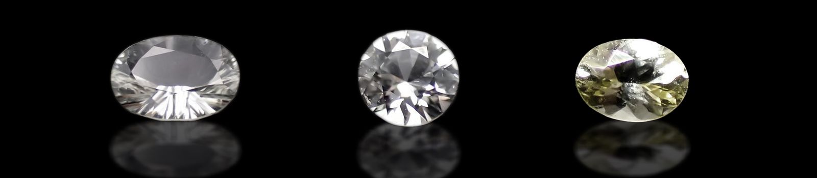 貴石には疎まれがちなインクルージョン(内包物)も、成長による気泡や針状インクルージョンはカラーレスのフォルステライトにそれぞれ表情をつけてくれます。輝きを阻害してしまう有色インクルージョンも、ジュエリーなどには向かないながら、エメラルドに見られる庭園のような面白みがあります。