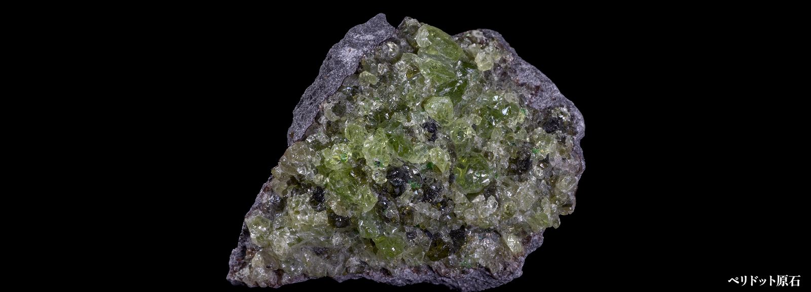 地表の他に、宇宙から飛来するフォルステライトもあります。一世を風靡した小惑星探査機ハヤブサが調査したイトカワからも、苦土カンラン石の発見があります。また苦土カンラン石は火星でも発見があり、特にペリドットは初めて宇宙で観測された宝石でもあります。