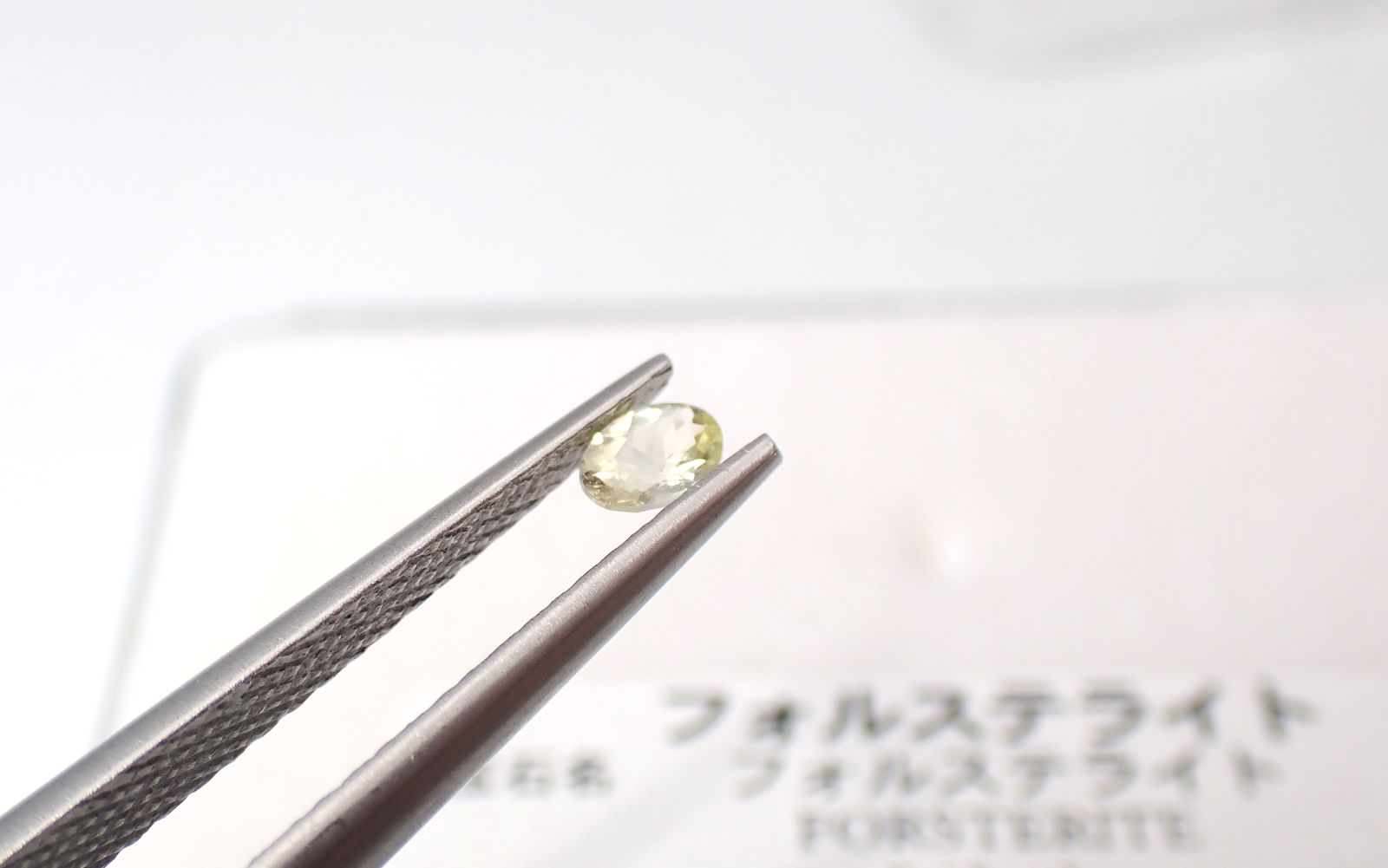フォルステライトはペリドットの兄弟とも言える石です。ペリドットといえばグリーンを代表する貴石ですが、このフォルステライトはカラーレス。ペリドットの輝きだけを追求した石といっても過言ではないでしょう。ガラス光沢も相まってくっきりとした光の反射を感じます。