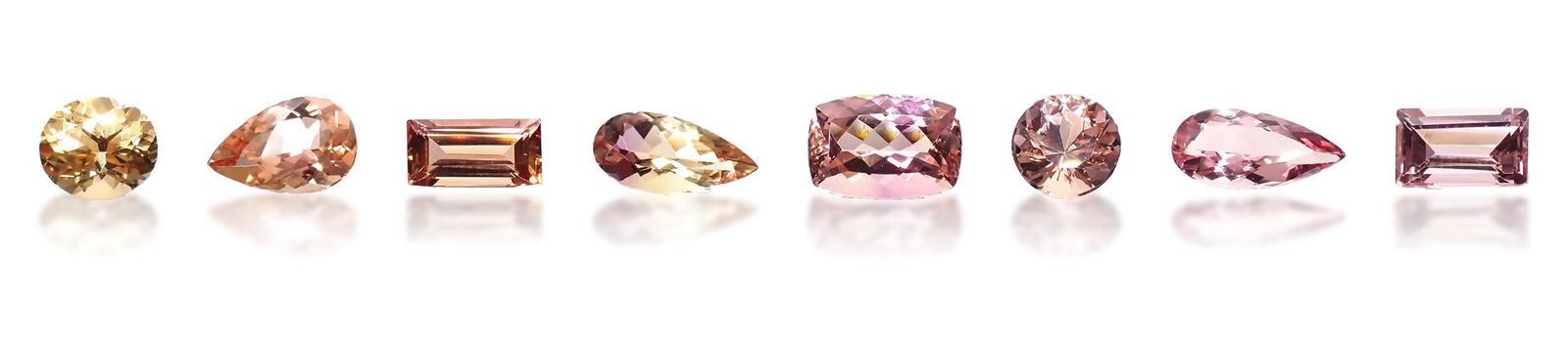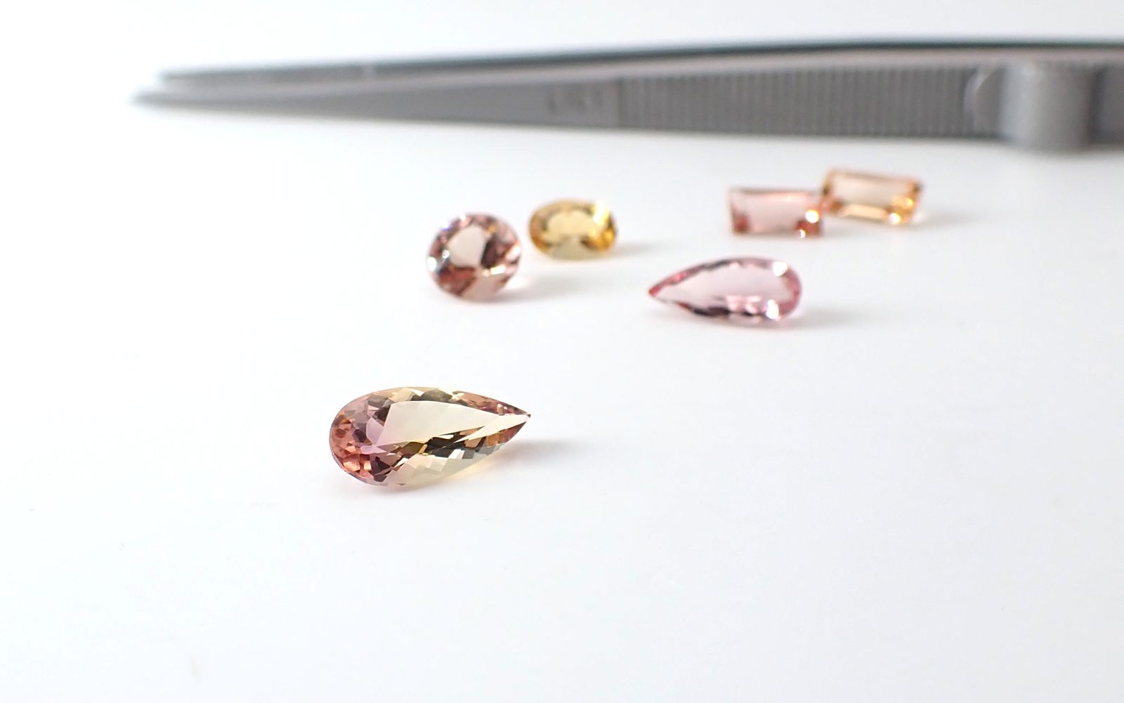 インペリアルトパーズは他に、黄金色に輝くゴールデンイエロー、華やかなオレンジ、甘やかなピーチカラーのオレンジピンク、艷やかなレディッシュピンク、より深いレッドに近いピンク、そしてピンク味のパープルと幅広くあります。