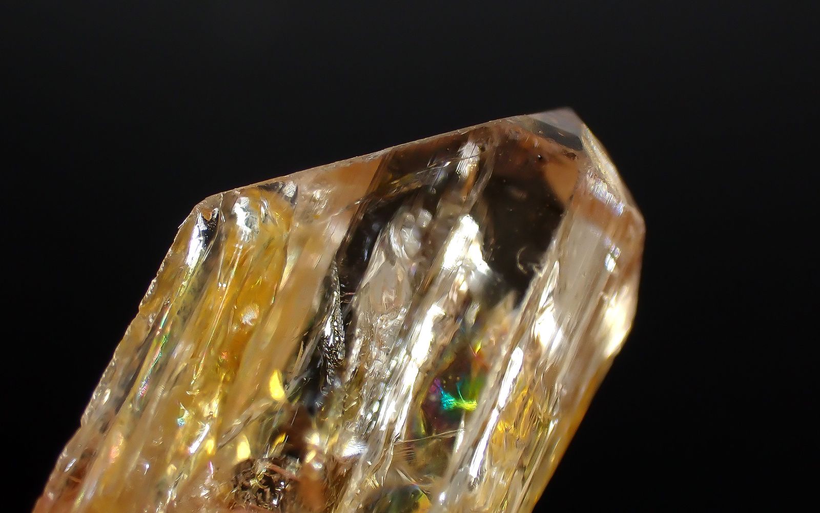 トパーズの多色性は弱く、全てのインペリアルトパーズで美しい多色性を感じられるわけではありません。その中で刻々と変化する黄昏時を一石に閉じ込めたような多色性が見られるインペリアルトパーズも最高品質といえるでしょう。
