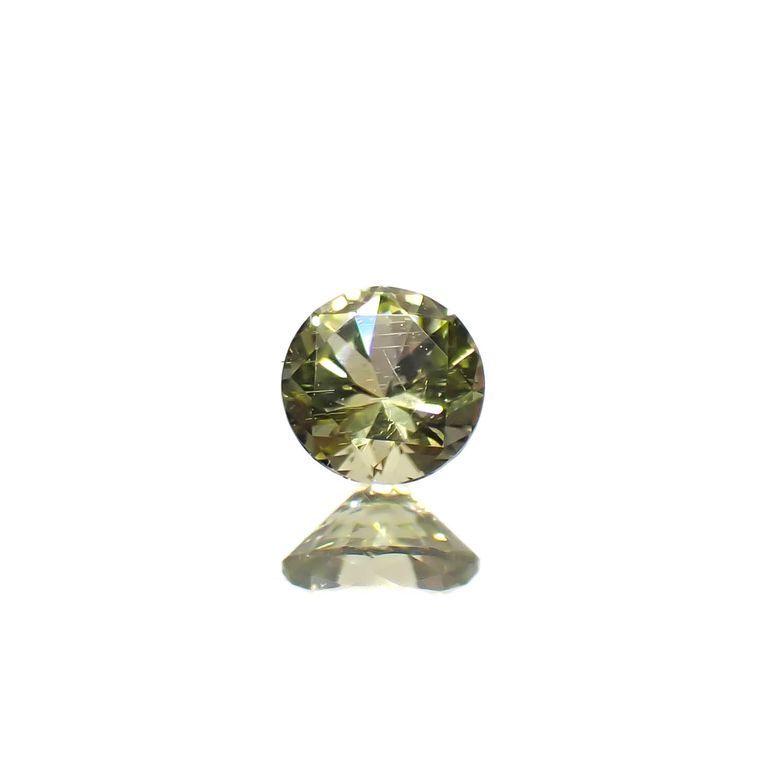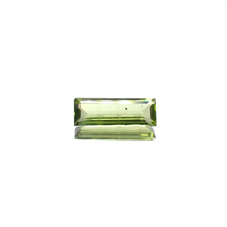 ペリドットは屈折率が高く(1.654~1.690)、さらに複屈折性も持っています。複屈折性とは、宝石の中に入った光が2方向に分かれて進む現象です。この複屈折性により、ペリドットのルースは奥のファセットが二重のラインに分かれて見えます。