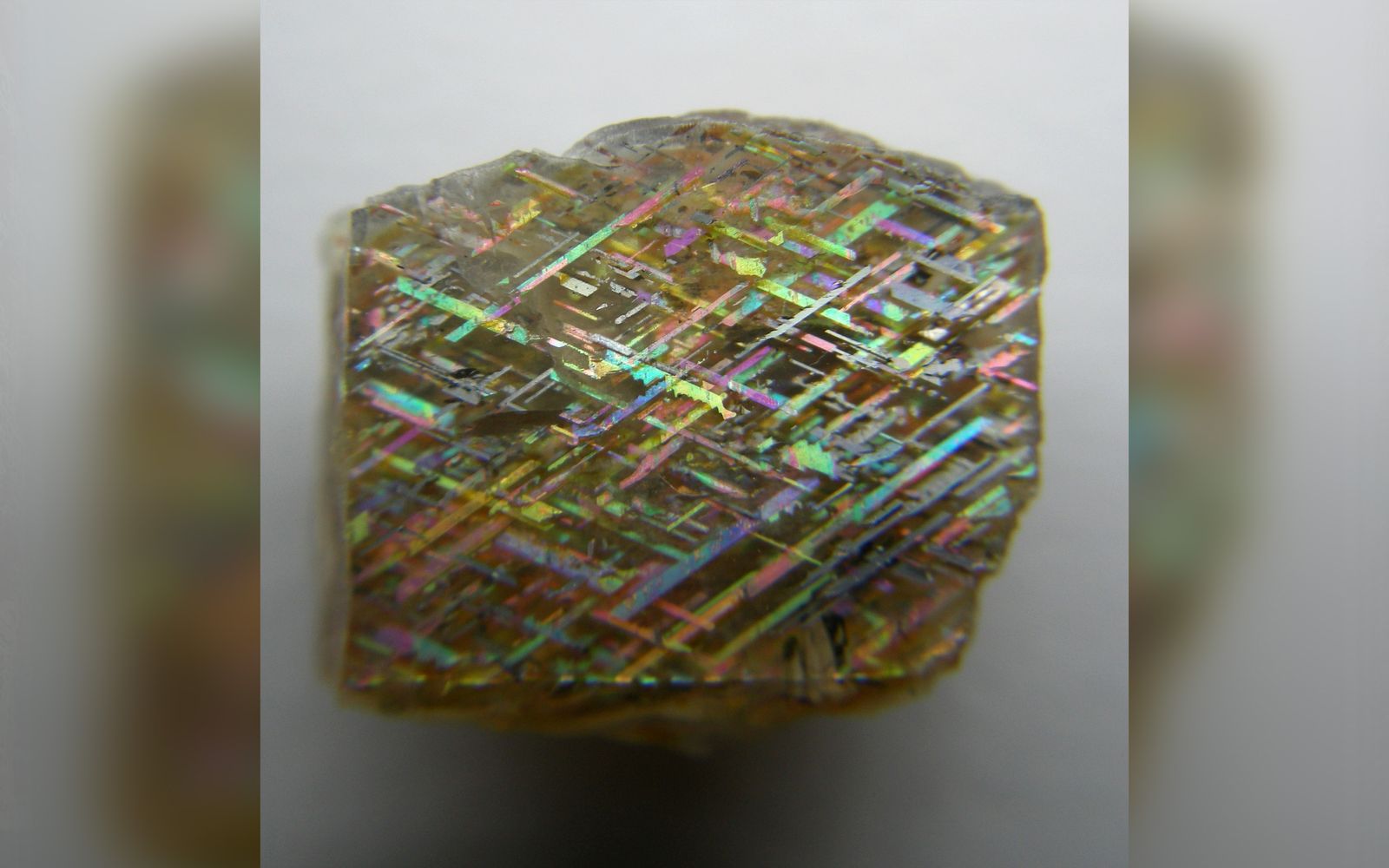 3つの光彩効果のうちの一つが、名前の由来でもある虹色に輝くラティス模様。この虹色に輝く効果はイリデッセンス(干渉色)と呼ばれます。また、ラブラドライトに見られるラブラドレッセンスと似た見え方をするため、文脈上そう表現されることもあります。