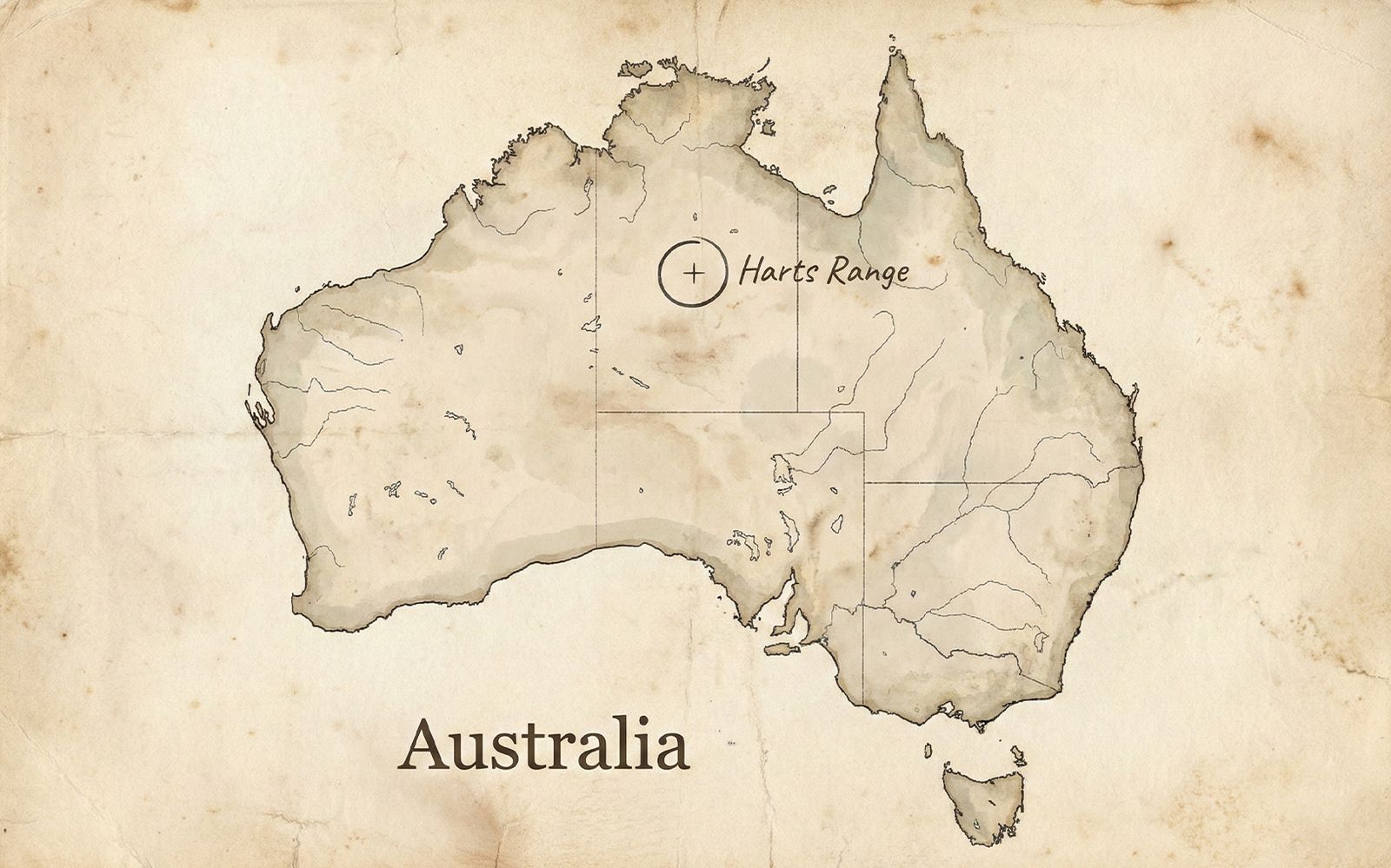 発見地はオーストラリア北部、赤褐色の大地と乾いた風が吹き抜けるハーツ・レンジ(Harts Range)と呼ばれる地域。